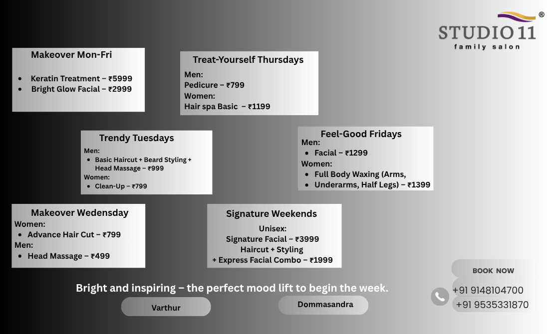 A studio is an artist’s sacred space. By referring to ourselves as a studio we hope to create an environment where our own artists, our talented technicians, can let their imaginations and creativity roam free so that they, and by extension you, love the work they do. 11 has signifies one on one service as we believe salon & spa service should be a very personalized service.